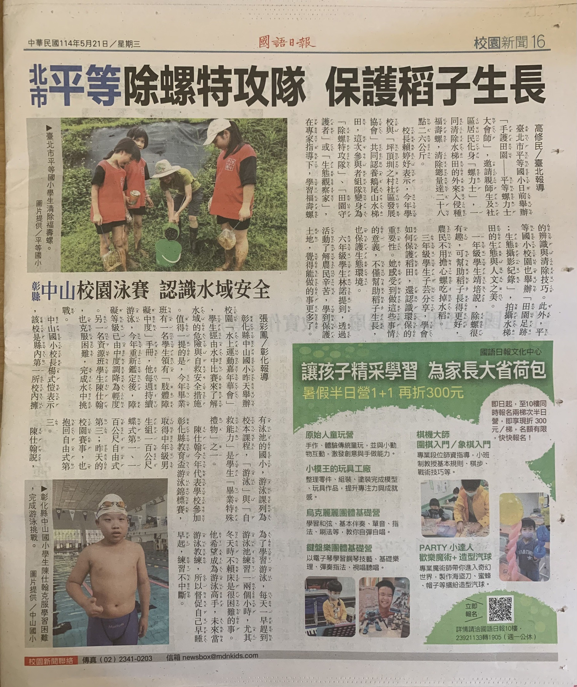 1140520陳仕翰克服學習障礙,完成游泳挑戰-國語日報報導