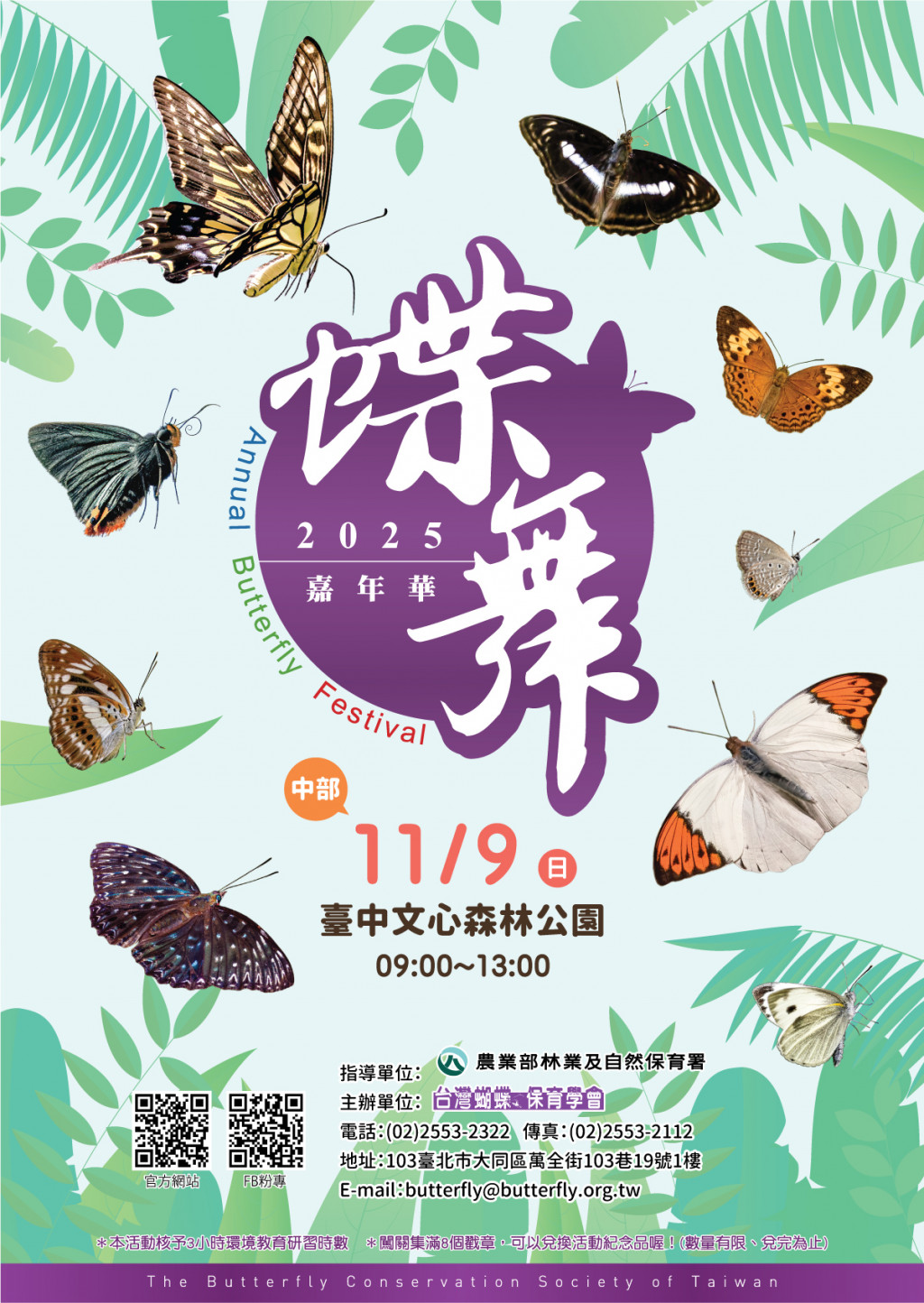 二、114年11月09日於文心森林公園(捷運站出口旁)舉行「2025蝶舞嘉年華」大型環境教育推廣活動(上午9點至下午1點)。