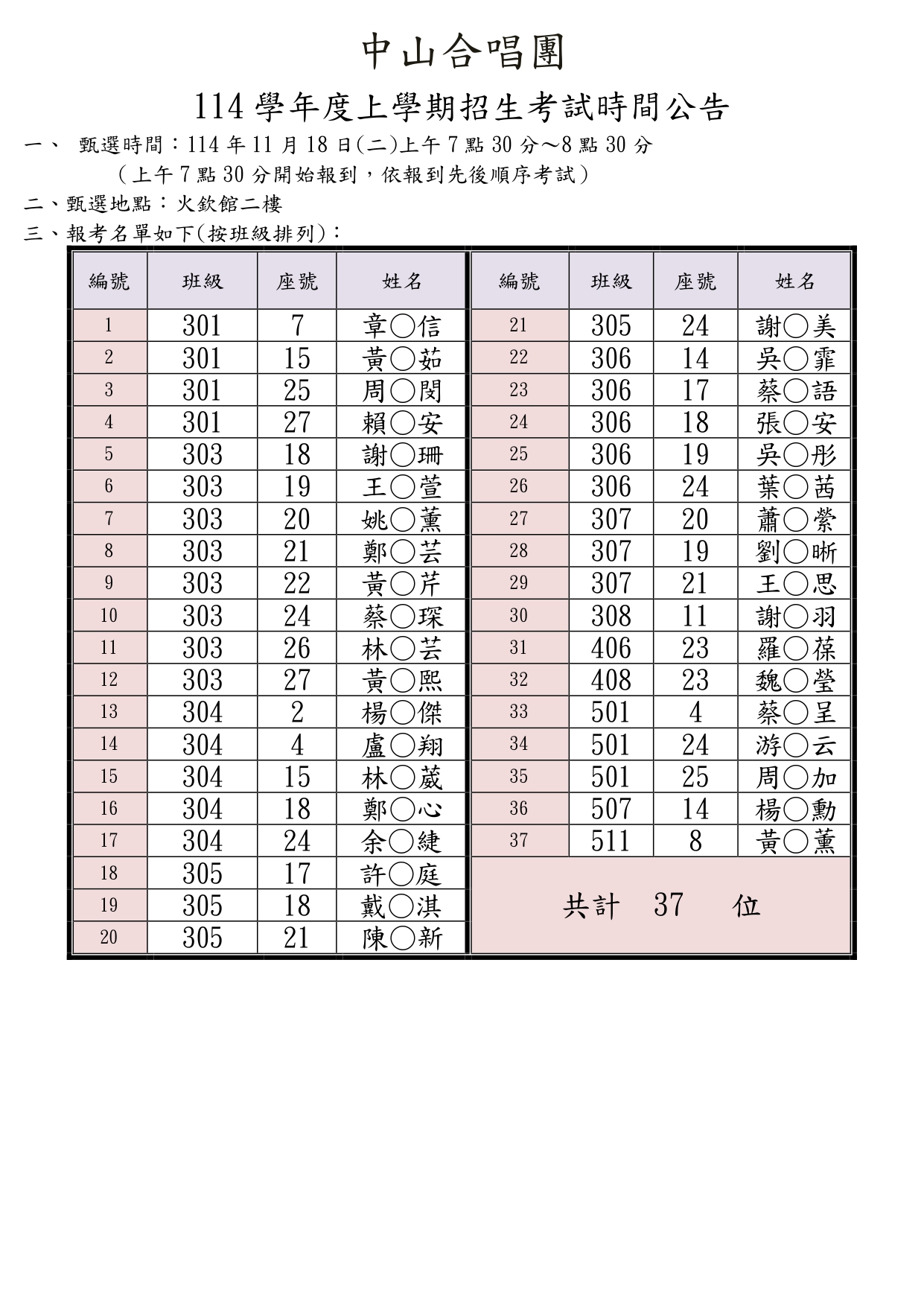(上午 7 點 30 分開始報到,依報到先後順序考試)
